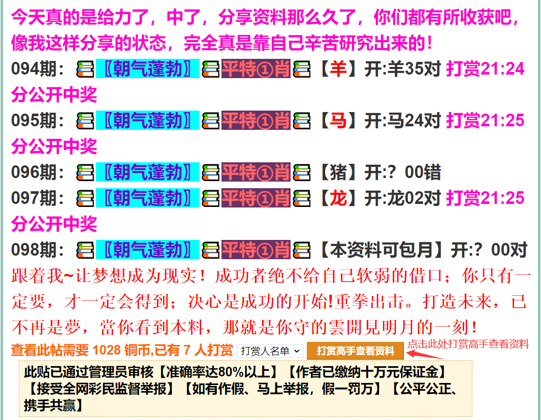 本料只在1382525.com独家发表,如果您觉得本站的资料不错,请截图分享到QQ群、微信群让更多的朋友中奖!你的转发就是对高手的最大支持!祝您一路长红,期期大中!